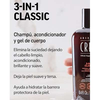 American Crew Tratamiento 3 en 1, Champú, Acondicionador y Gel de Ducha Classic 1L