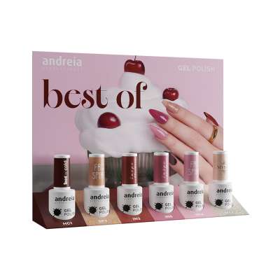 Algunos tonos han vuelto para quedarse con la nueva colección Best Of de Andreia Professional. 6 tonos que han sido mucho más que tendencia en ediciones limitadas pasadas, han creado un nuevo conjunto de tonos perfectos para esta tamporada. Pasando por colecciones como Hot'N Cold o Free Spirit, estos tonos prometen llenar tu manicura de color y de un brillo increíble. Este expositor está pensado para salones de belleza, centros de estética o profesionales de la manicura que desean ofrecer a sus clientes una selección de tonos imprescindibles y versátiles. Con su fórmula de alta calidad, estos esmaltes garantizan una aplicación fácil y precisa, y su durabilidad prolongada asegura que tu manicura se mantenga intacta hasta 4 semanas.