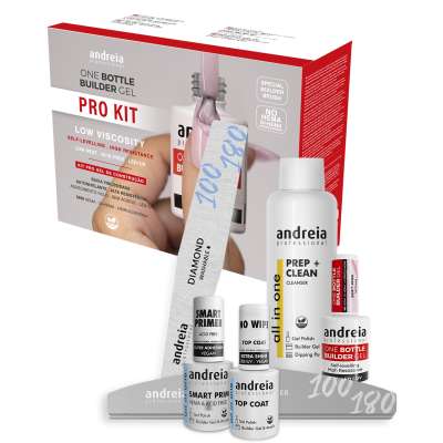 El Pro Kit One Bottle Builder Gel de Andreia Professional ha sido creado para profesionales y amantes de la manicura que buscan máxima eficiencia, rapidez y resultados impecables en un solo sistema. Este completo kit reúne todos los productos esenciales necesarios para realizar un servicio completo de construcción en gel, desde la preparación de la uña hasta el acabado final brillante.