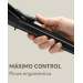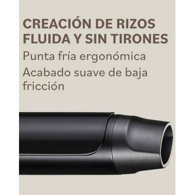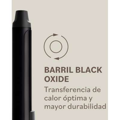 Su barril con recubrimiento de óxido negro y pinza con acabado cerámico garantizan una distribución uniforme del calor, facilitando una liberación suave del cabello y aportando brillo extra.