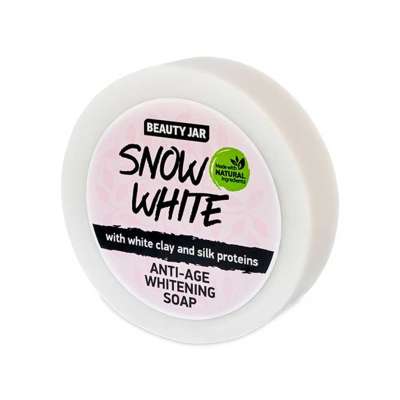 Obtén los asombrosos beneficios de la arcilla blanca en tu piel tras la primera aplicación del jabón antiedad SNOW WHITE de Beauty Jar. Un jabón humectante que no solo limpia tu piel sino que la suaviza de forma espectacular gracias también a las proteínas de seda. Mejora el aspecto y el tacto de tu piel de manera rápida y sencilla tras cada uso. La pastilla de jabón SNOW WHITE antiedad se convertirá en tu mejor aliada a la hora de conseguir esa piel envidiable que tanto quieres tener.