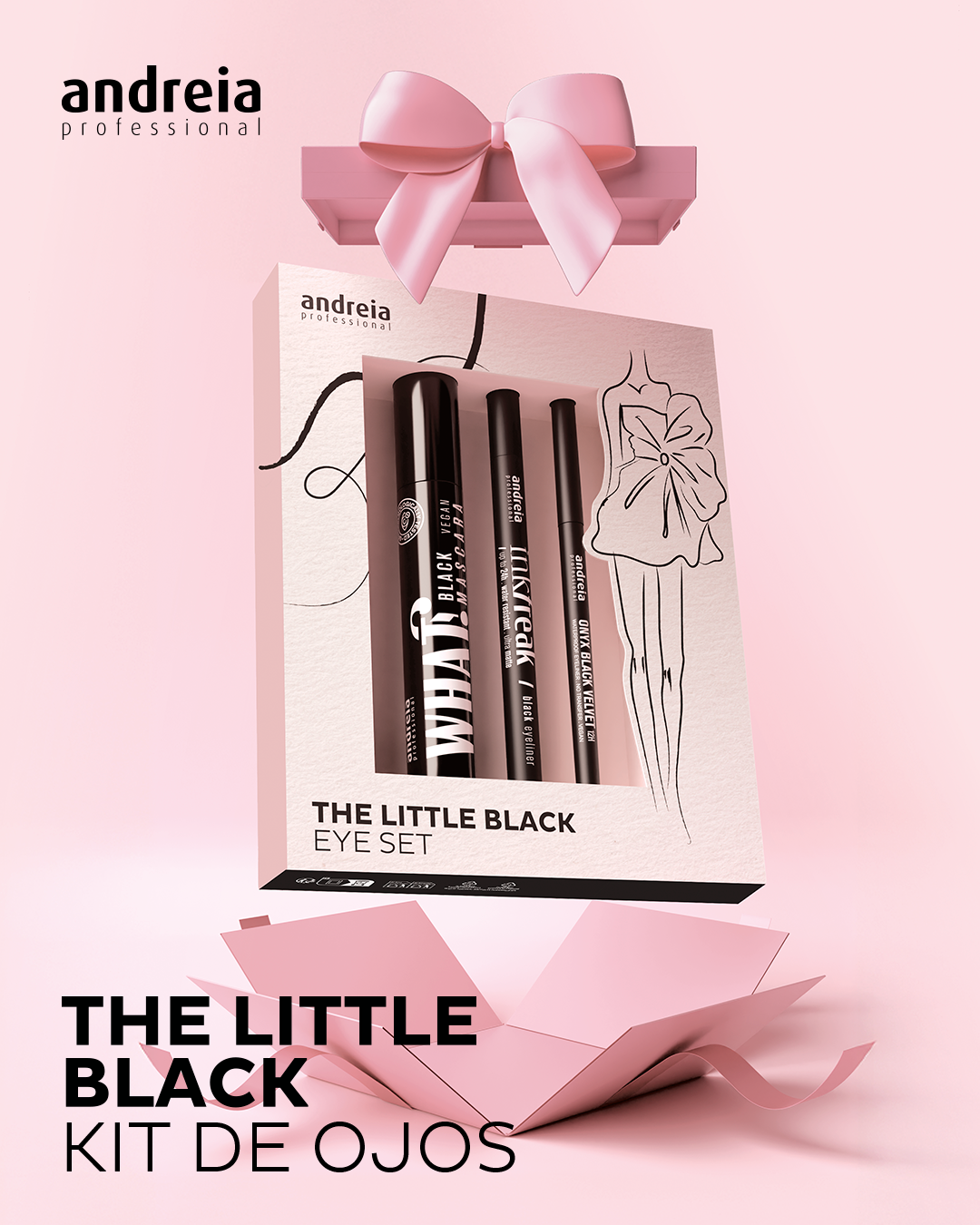 El Little Black Kit combina máscara de pestañas, lápiz de ojos y eyeliner líquido para crear una mirada intensa y elegante.