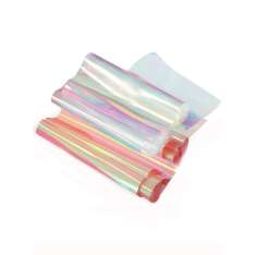 ¡Una lámina de transferencia para crear arte en tus uñas que le da un efecto metálico-holográfico! La película se puede colocar sobre toda la uña o crear patrones brillantes. Además se puede utiliz...