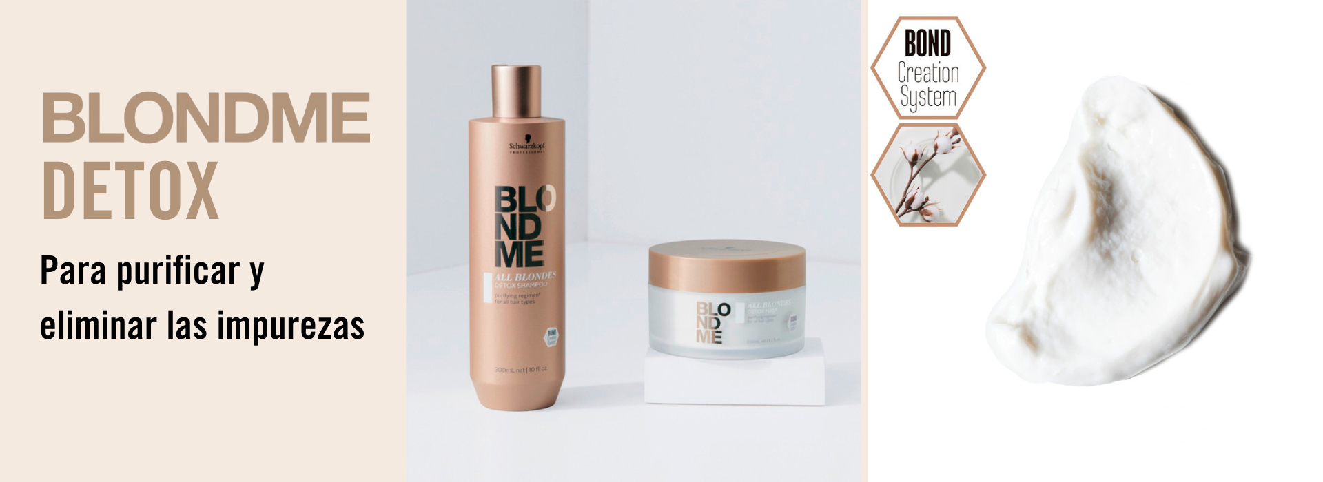Descubre la Gama Detox de BlondMe, una gama cuyo objetivo principal es el de actuar a modo de tratamiento purificante para todo tipo de cabellos rubios. Esta gama posee Tecnología 3D Bond Creation y un Complejo Nordic Cotton que regenera los puentes internos del cabello mientras que purifica todos los cabellos rubios. Además, ha sido formulada a partir de Proteína de Soja hidrolizada y Extracto de Semilla de Moringa para reavivar los rubios sin brillo y cálidos.