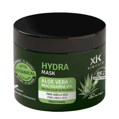 La Mascarilla Hydra con Aloe Vera de Xik Hair es un tratamiento intensivo diseñado para hidratar, nutrir y revitalizar el cabello seco y deshidratado. Su fórmula profesional con extractos botánicos combina el poder calmante del aloe vera con las propiedades nutritivas del aceite de macadamia, ayudando a restaurar la suavidad, elasticidad y brillo natural del cabello.