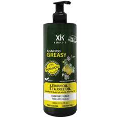 - GREASY Champú Anti-Graso con Aceite de Árbol de Té y Aceite de Limón. Elimina todo el exceso de sebo del cuero cabelludo utilizando este champú para mejorar la oxigenación de la piel y del cuero cabelludo.