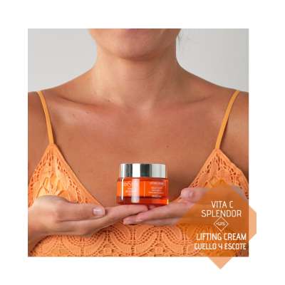 Aplica la crema sobre la piel limpia en el cuello y el escote, masajea hasta su total absorción.