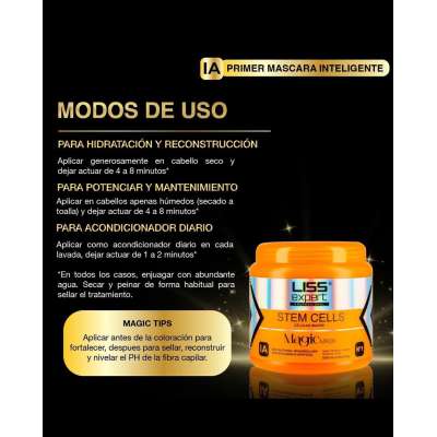 La Magic Mask es la primera mascarilla capilar creada con inteligencia artificial, diseñada para reparar, revitalizar y transformar el cabello desde la raíz hasta las puntas. Su innovadora fórmula combina células madre, aceite de argán, queratina y ácido hialurónico, actuando a nivel profundo para regenerar la fibra capilar, restaurar la elasticidad y devolverle a tu melena su brillo y suavidad natural.