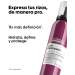 PRECAUCIONES – AEROSOL EXTREMADAMENTE INFLAMABLE. Recipiente a presión: puede reventar si se calienta. Mantener alejado del calor, de superficies calientes, de chispas, de llamas abiertas y de cualquier otra fuente de ignición. No fumar. No pulverizar sobre una llama abierta u otra fuente de ignición. No perforar ni quemar, incluso después de su uso. Proteger de la luz del sol. No exponer a temperaturas superiores a 50ºC/122ºF. NO EXPONER EN UN COCHE A PLENO SOL, EN LA PLAYA O SOBRE UN RADIADOR. NO DEBE UTILIZARSE NINGÚN FRASCO DEFORMADO. Mantener fuera del alcance de los niños. No utilizar para un uso distinto para el cual el producto está destinado. Evitar vaporizar hacia los ojos o sobre una piel irritada e inhalar intencionadamente. No utilizar en un espacio confinado.