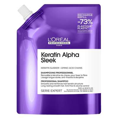 L'oreal Serie Expert Keratin Alpha Sleek Champú Sin Sulfatos para Control de Volumen y Frizz Recarga 500ml