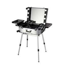 Un tocador portátil sin igual Este tocador para maquillaje se transforma en un maletín trolley portátil fácil de transportar y para poder maquillar en cualquier lugar. Cuenta con un diseño comp...