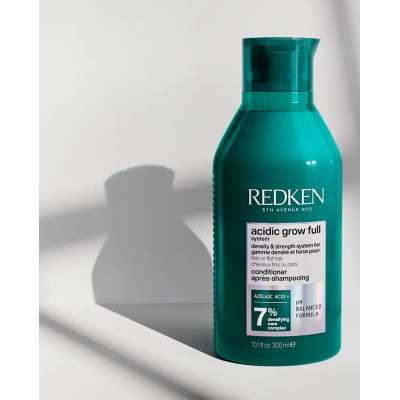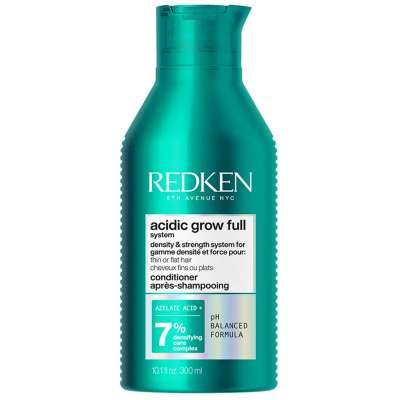 El Acondicionador Acidic Grow Full System de Redken es el segundo paso imprescindible del sistema de densidad y fuerza desarrollado para el cabello fino, liso o afinado. Su fórmula ligera e hidratante actúa eficazmente sin apelmazar, ayudando a reequilibrar el cuero cabelludo y a mejorar visiblemente la textura del cabello desde la primera aplicación. Aporta hidratación inmediata mientras fortalece la fibra capilar, dejando el cabello más manejable, suelto y con mayor sensación de densidad.