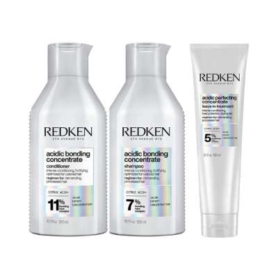 El cabello dañado no tiene que ser una sentencia. Ya sea por decoloraciones, herramientas de calor, tintes o simplemente el desgaste diario, tu melena puede volver a lucir sana, fuerte y brillante. El Cofre Acidic Bonding Concentrate de Redken combina tres poderosos pasos que trabajan en sinergia para reparar la fibra capilar desde el interior. Esta línea profesional, recomendada por estilistas de todo el mundo, fortalece los enlaces internos del cabello, equilibra el pH y sella la cutícula para un resultado visiblemente más saludable.