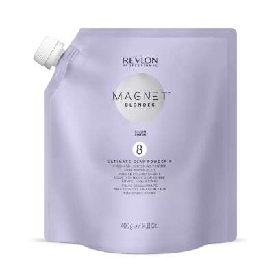 Revlon Magnet Blondes es un innovador polvo decolorante profesional formulado para alcanzar hasta 8 niveles de aclarado con la máxima precisión y respeto por la fibra capilar. Su tecnología avanzada con arcilla protectora permite un control óptimo durante todo el proceso, evitando que el producto se expanda y garantizando una aplicación limpia y segura, incluso en técnicas a mano alzada (balayage, mechas o babylights).