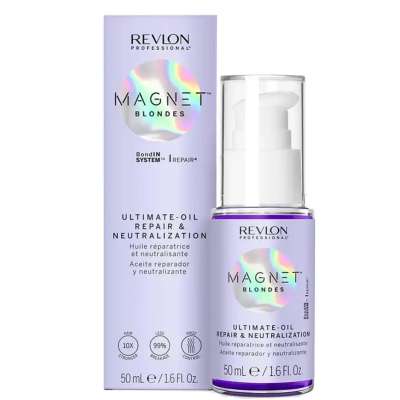 El aceite capilar Magnet Blondes Ultimate Hair Oil de Revlon está especialmente formulado para cabellos rubios, decolorados o con mechas que necesitan reparación, protección y mantenimiento del color.