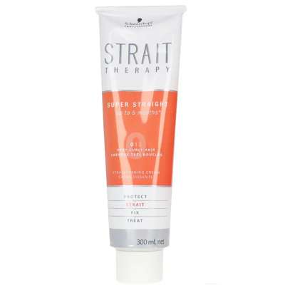 La Crema Alisadora Strait Therapy de Schwarzkopf es un tratamiento profesional de alisado permanente diseñado para domar el cabello rebelde, rizado u ondulado, dejándolo completamente liso, suave y con un brillo de espejo.