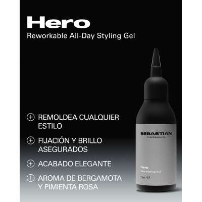 El Hero Gel de Sebastian SebMan es un gel profesional diseñado para quienes buscan un acabado liso, brillante y completamente remoldeable durante todo el día. Su fórmula permite fijar el cabello sin rigidez, dejando un tacto natural y flexible que facilita reajustar y remodelar el peinado tantas veces como quieras, manteniendo el estilo definido, brillante y bajo control.