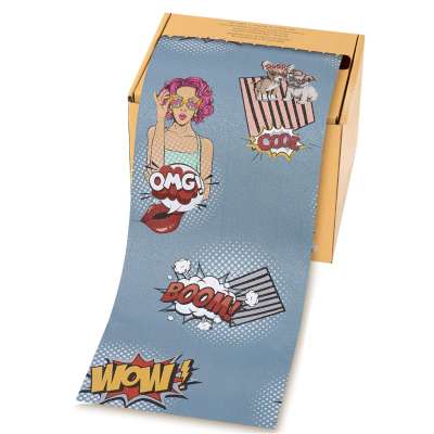 Su diseño moderno tipo pop art aporta un toque creativo y diferenciador en el salón, mientras que su formato en rollo con caja dispensadora facilita el corte y uso diario. Con sus dimensiones de 12,7 cm x 97 metros, es ideal para un uso intensivo y profesional.
