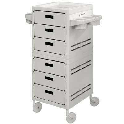 Con 6 cajones amplios que permiten almacenar de manera organizada tus herramientas y productos de peluquería, y soportes extraíbles para utensilios, tendrás todo lo que necesitas al alcance de la mano.