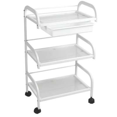 Equipado con tres estanterías abiertas y un cajón superior, permite mantener productos, herramientas y accesorios al alcance de la mano, optimizando el espacio de trabajo y agilizando la rutina diaria. Las ruedas permiten un desplazamiento fluido, ideal para trabajos que requieren movilidad constante dentro del salón.