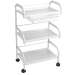El Viola es un Carro de Servicio Blanco, un soporte profesional diseñado para organizar y facilitar el trabajo en salones de peluquería y estética. Su estructura combina elegancia y funcionalidad, con un marco metálico blanco resistente y estantes de vidrio mate que aportan un acabado moderno.