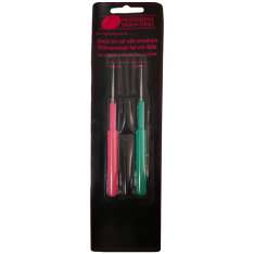 ¡Un pack ideal para tu trabajo! Vienen dos ganchillos de metal con punta especial para sacar mechas de pelo por los agujeros del gorro. Uno es de 1,25 mm con mango verdoso, y el otro es más pequeño...