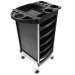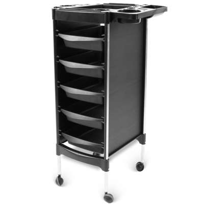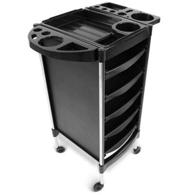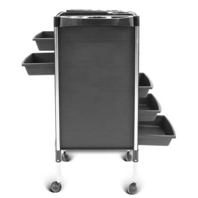 Su estructura compacta y resistente permite mantener todas las herramientas y productos de trabajo siempre a mano, facilitando el ritmo diario del profesional. Fabricado con una estructura metálica robusta y un elegante acabado en color negro, se integra perfectamente en cualquier espacio de trabajo, aportando funcionalidad, orden y una imagen profesional.