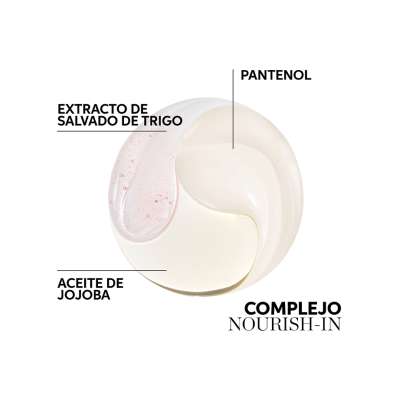 - Nutre profundamente el cabello gracias a su fórmula con extracto de salvado de trigo y aceite de jojoba.