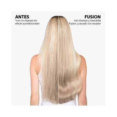 1x Mascarilla Fusion 150ml. Esta mascarilla cremosa ayuda a reparar el cabello dañado y lo protege contra la rotura en solo 5 minutos de aplicación. Su fórmula avanzada con lípidos micronizados desenreda suavemente el cabello, dejándolo sedoso y notablemente más resistente.