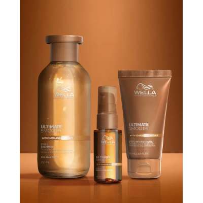 1x Mascarilla Ultimate Smooth 75ml. Su fórmula innovadora combina ingredientes de alto rendimiento, como el escualano y omega-9, que trabajan en conjunto para reparar la fibra capilar desde el interior y proporcionar una suavidad y brillo duraderos.