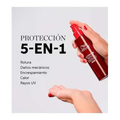 - Crema protectora sin aclarado que ofrece una defensa instantánea para el cabello dañado, abordando cinco problemas clave.